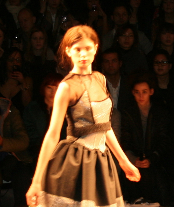 The theme was somewhat rockish/modern chic warrior (it all makes more sense in my head) The music made me want to go to a rave and the atmosphere was just too exciting for words. CHAOS!! I've never seen layering been done so beautifully. Lots of puffs and huffs. I saw lots of dark colours....... shades of deep purples, dark green, black, black and more black. Think Glamorous Emo.